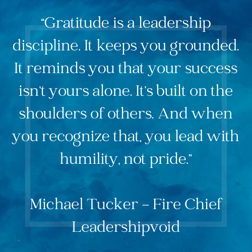 Gratitude is a leadership discipline. It keeps you grounded. It reminds you that your success isn’t yours alone. It’s built on the shoulders of others. And when you recognize that, you lead with humility, not pride.  Leaders who operate from a position of gratitude often have significant potential to have influence on those around them.  People want to feel better about themselves and the world around them.  Operating from a spirit of gratitude results in an environment that makes people feel better.